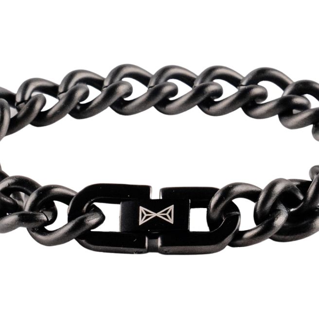 Deze armband is van het merk AZE Junior. Het is een jongenssieraad gemaakt van edelstaal. De armband is zwart van kleur.