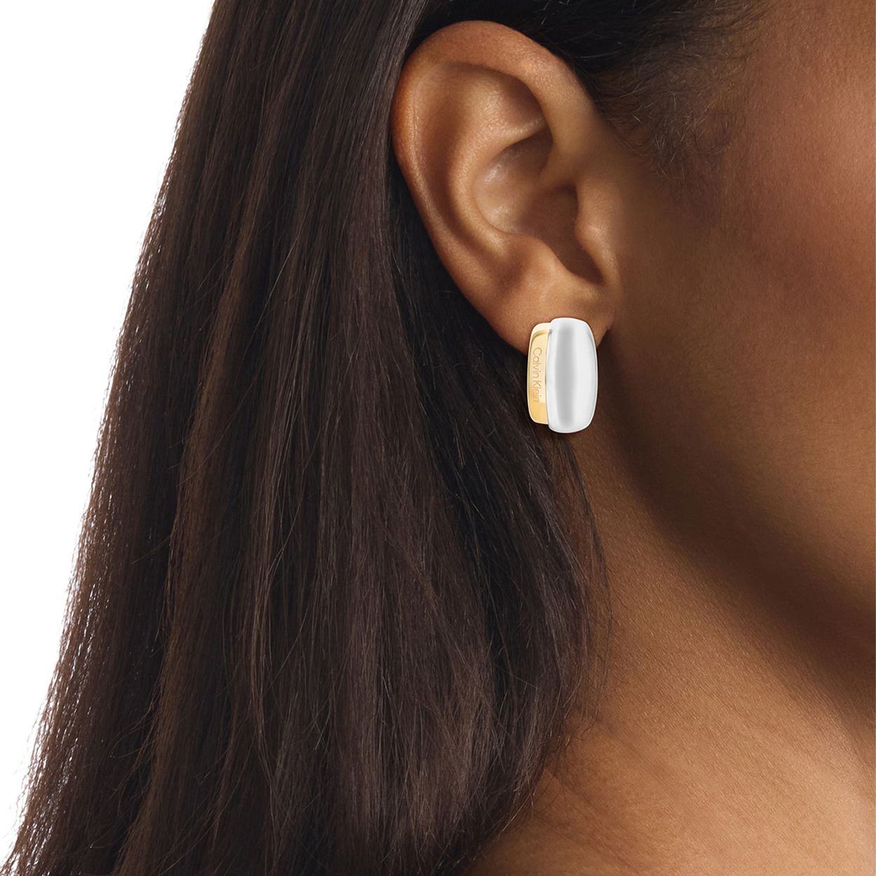 Deze stalen dames oorbellen van Calvin Klein met nr CJ35000613 hebben een fantasievolle uitstraling. De bi-color oorbel zit met een steker in het oor en hangt mooi onder het oor. De sculpturele vorm geeft het een speelse uitstraling. In het goudkleurige gedeelte is het CK logo gegraveerd. Leuk te combineren met andere sieraden uit de serie van Calvin Klein.