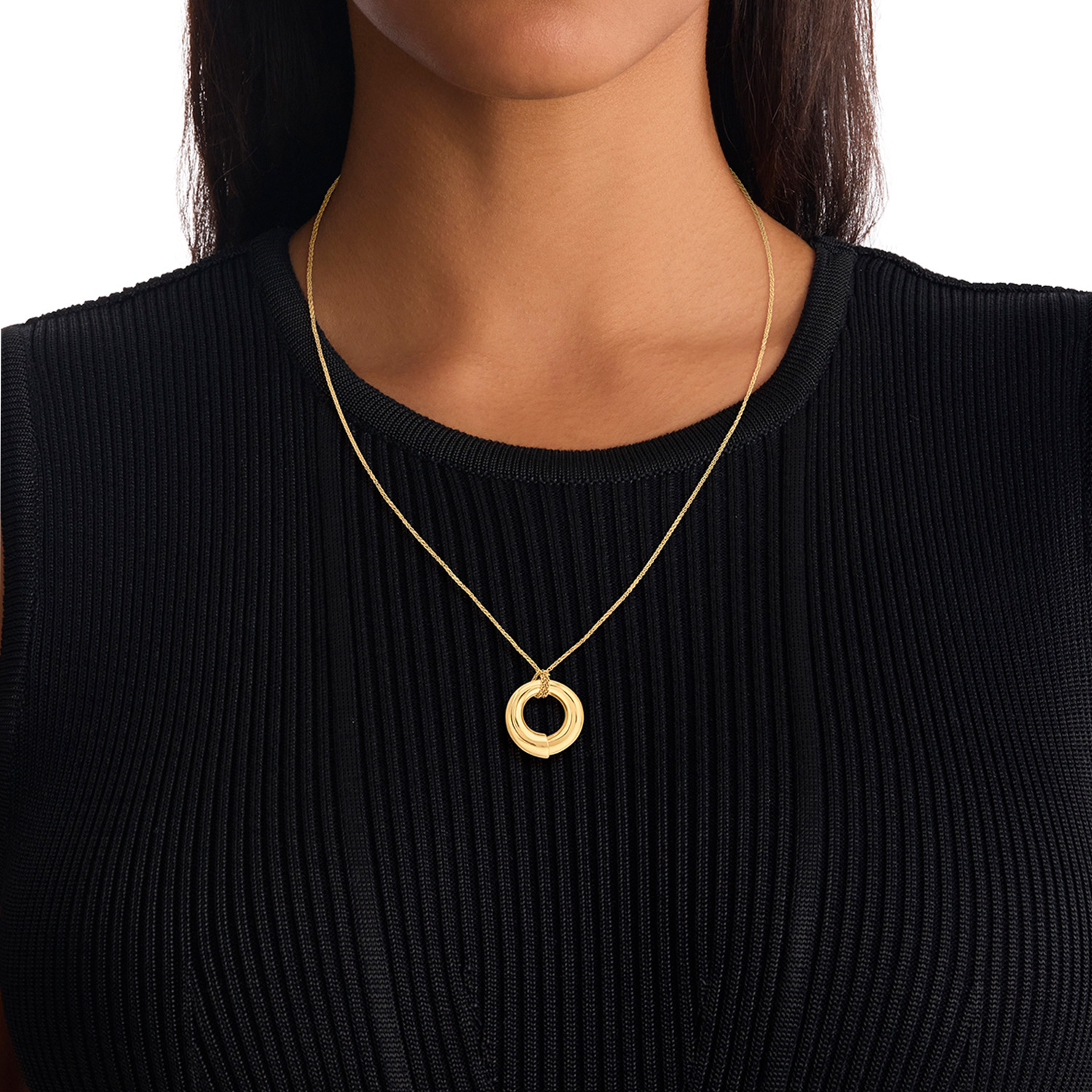 Deze stalen dames ketting van Calvin Klein met nr CJ35000761 heeft een strak uiterlijk. De stalen goudkleurige schakelketting heeft een sculpturale hanger aangeknoopt. De glimmende hanger heeft een spiraalvorm. De ketting heeft een lengte van 61cm en sluit met een karabijnsluiting. Leuk te combineren met andere sieraden uit de serie van Calvin Klein.