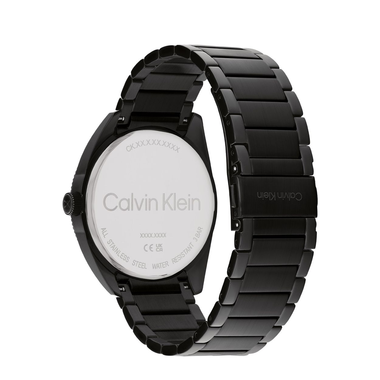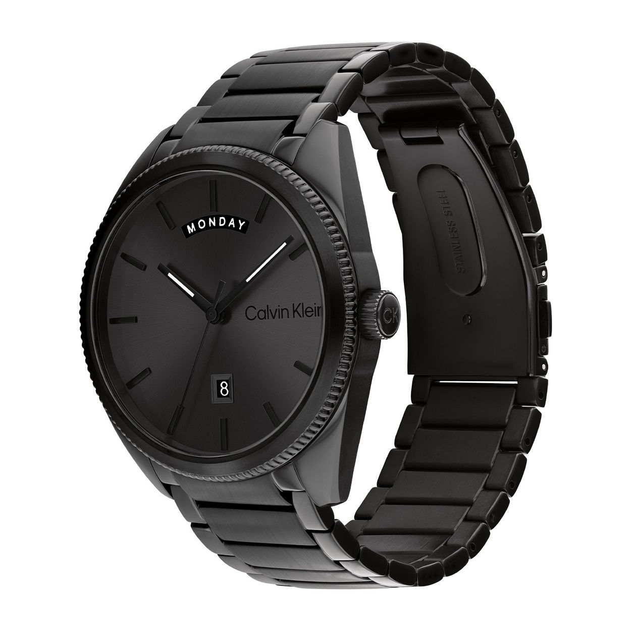 Dit Calvin Klein herenhorloge met nr CK25200448 is een chique ontwerp. De stijlvolle ronde zwarte stalen kast heeft een bewerkte bezel met een zwarte wijzerplaat met dag en datumsaanduiding. Aan het horloge zit een stalen zwart schakelband met vouwluiting. Het horloge heeft een mineraalglas, een doorsnee van 42mm en is 3ATM.