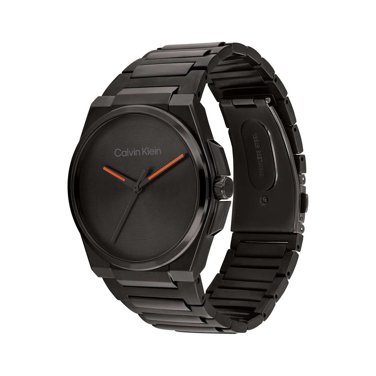 Dit Calvin Klein herenhorloge met nr CK25200455 is een gestyled ontwerp. De mooi gevormde stalen zwarte kast heeft een gladde bezel en een zwarte sunray wijzerplaat met fijne wijzers als uursaanduiding met rode accenten. Aan het horloge zit een fijne zwarte stalen schakel band met vouwluiting. Het horloge heeft een mineraalglas, een doorsnee van 41mm en is 3ATM.