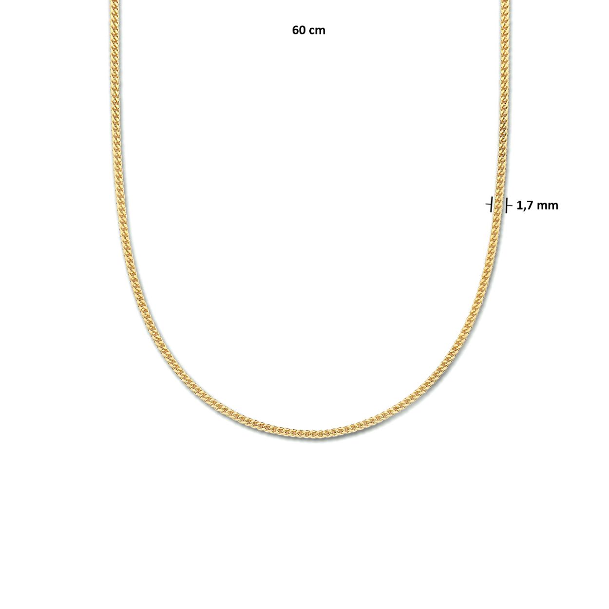 Geelgoud op 925 zilveren gourmet collier met een schakelbreedte van 1.8mm en een stevige karabijn sluiting. Geen garantie op plating.