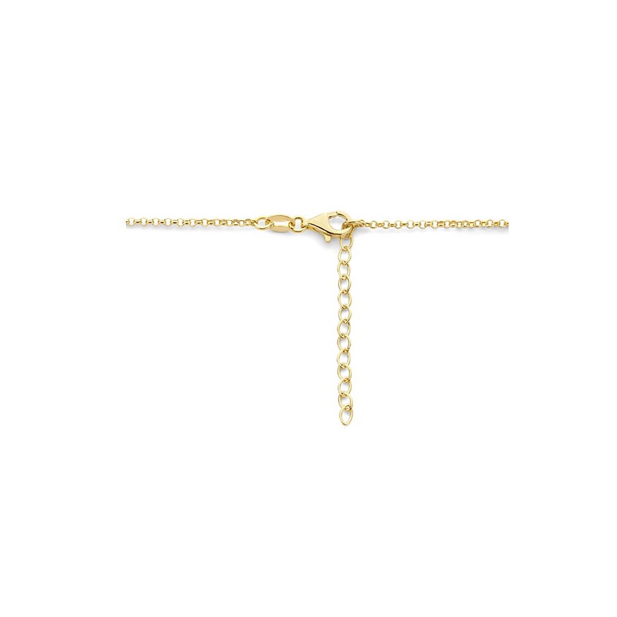 Geelgoud op 925 zilveren collier uitgevoerd met een ronde hanger. Het collier heeft een draaglengte van 40cm met een extensie van 4cm en een stevige karabijn sluiting. De hanger heeft een diameter van 10mm.