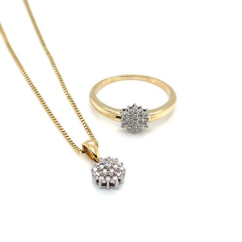 BICOLOUR GOUDEN ROZET HANGER. Prijs is exclusief collier en ring.