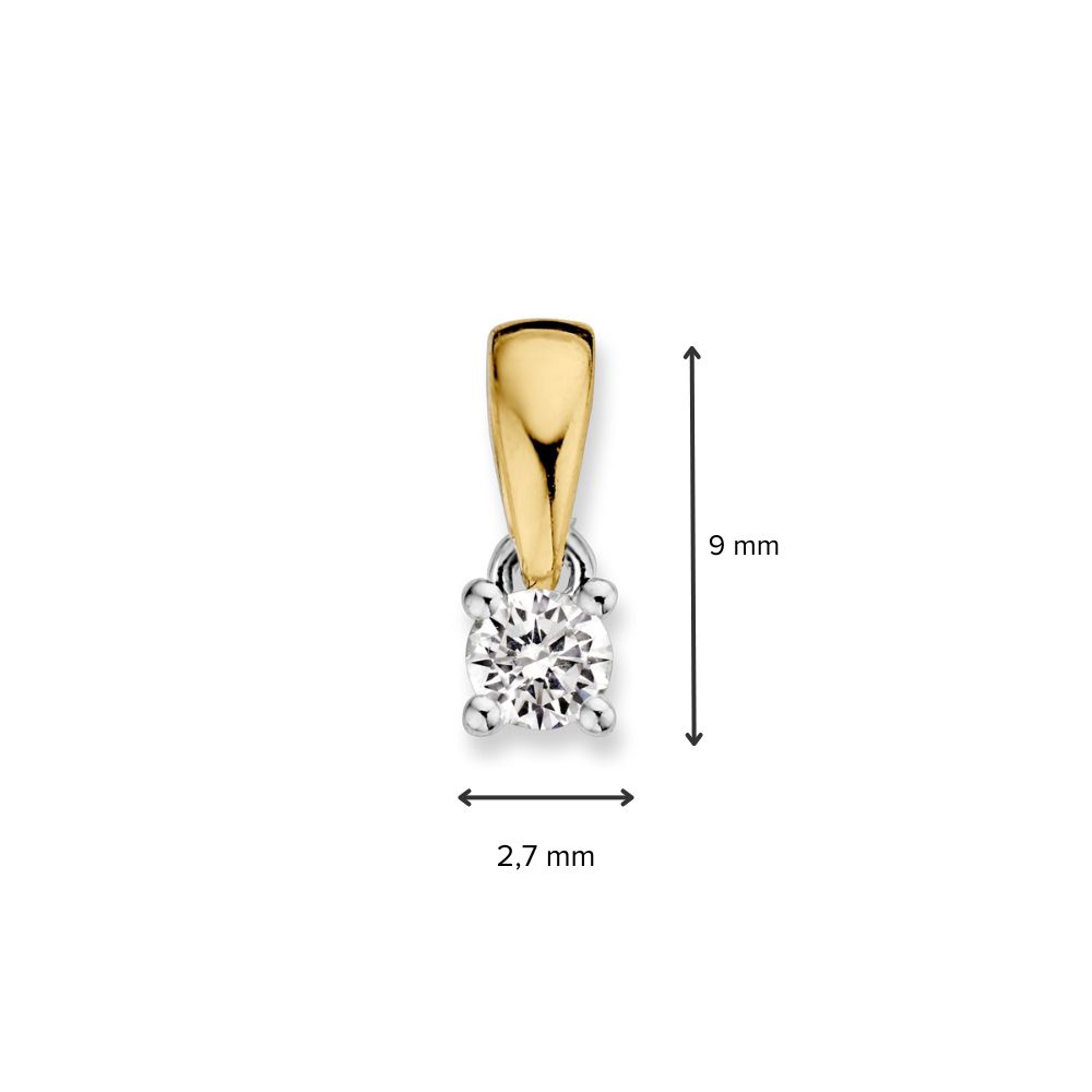 Bicolor gouden solitair hanger met 0,10 crt. briljant in vierpootszetting.