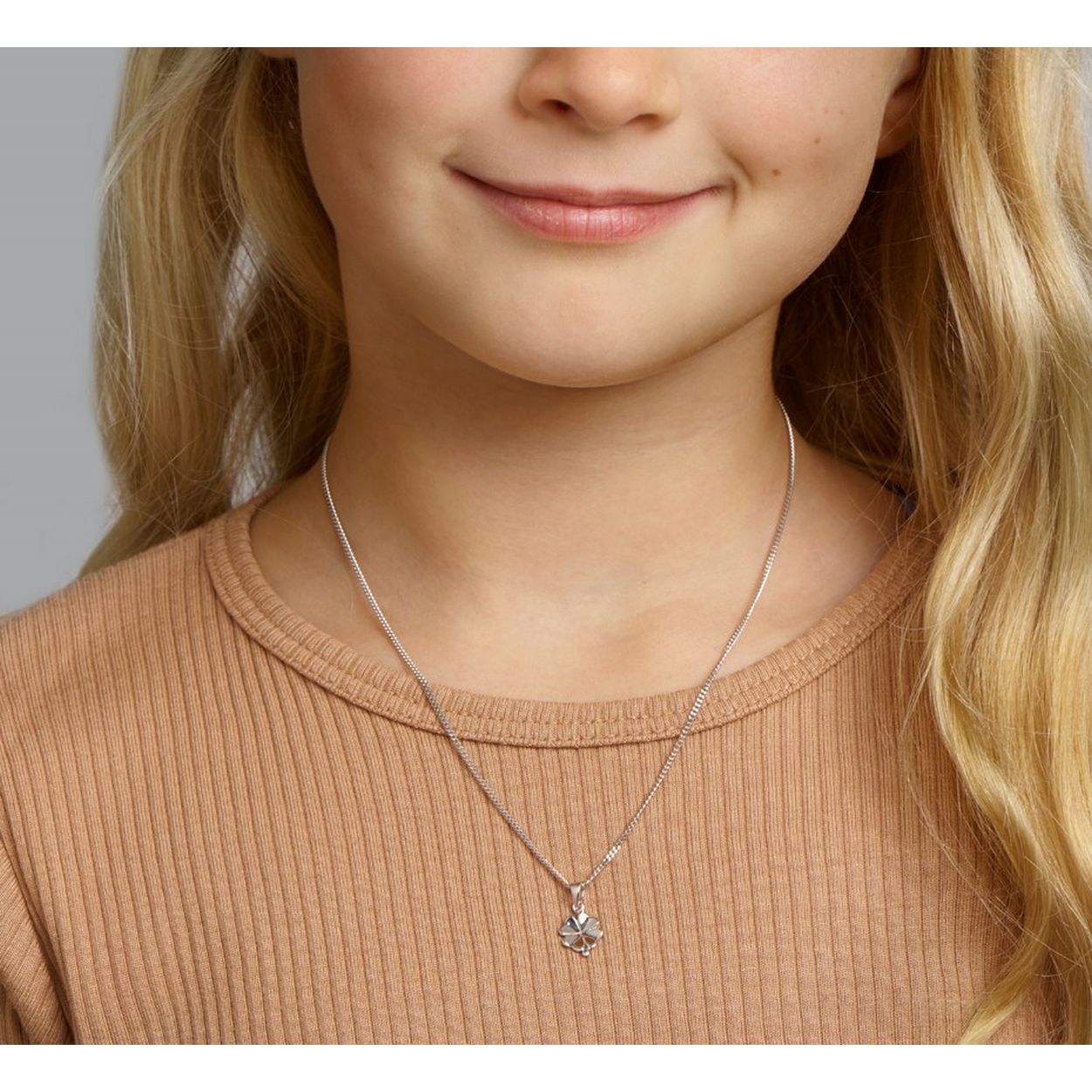 Gerhodineerd 925 zilveren hanger in de vorm van een klavertje. De hanger heeft een totale hoogte van 1.5cm. De hanger heeft een afmeting van 12.5x8mm.