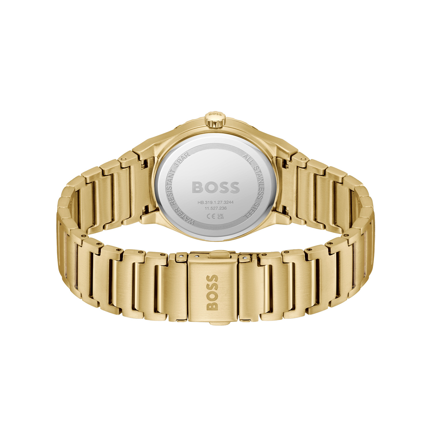 Dit BOSS horloge uit de CANDOR SPORT serie met artikelnr: HB1502789 heeft een chique uitstraling. Zeer geschikt voor de moderne stijlvolle vrouw van nu. Het dameshorloge valt op door zijn stalen goudkleurige horlogekast met een zilverkleurige aluminium bezel en een zilverwitte sunray wijzerplaat met ronde en baquet kristallen als uursaanduiding. De fijne wijzers hebben een lumibrite accent. Aan de kast zit een stalen strak ogende goudkleurige schakelband met een vouwsluiting. Het horloge heeft een doorsnee van 32mm een mineraalglas en is 3ATM.