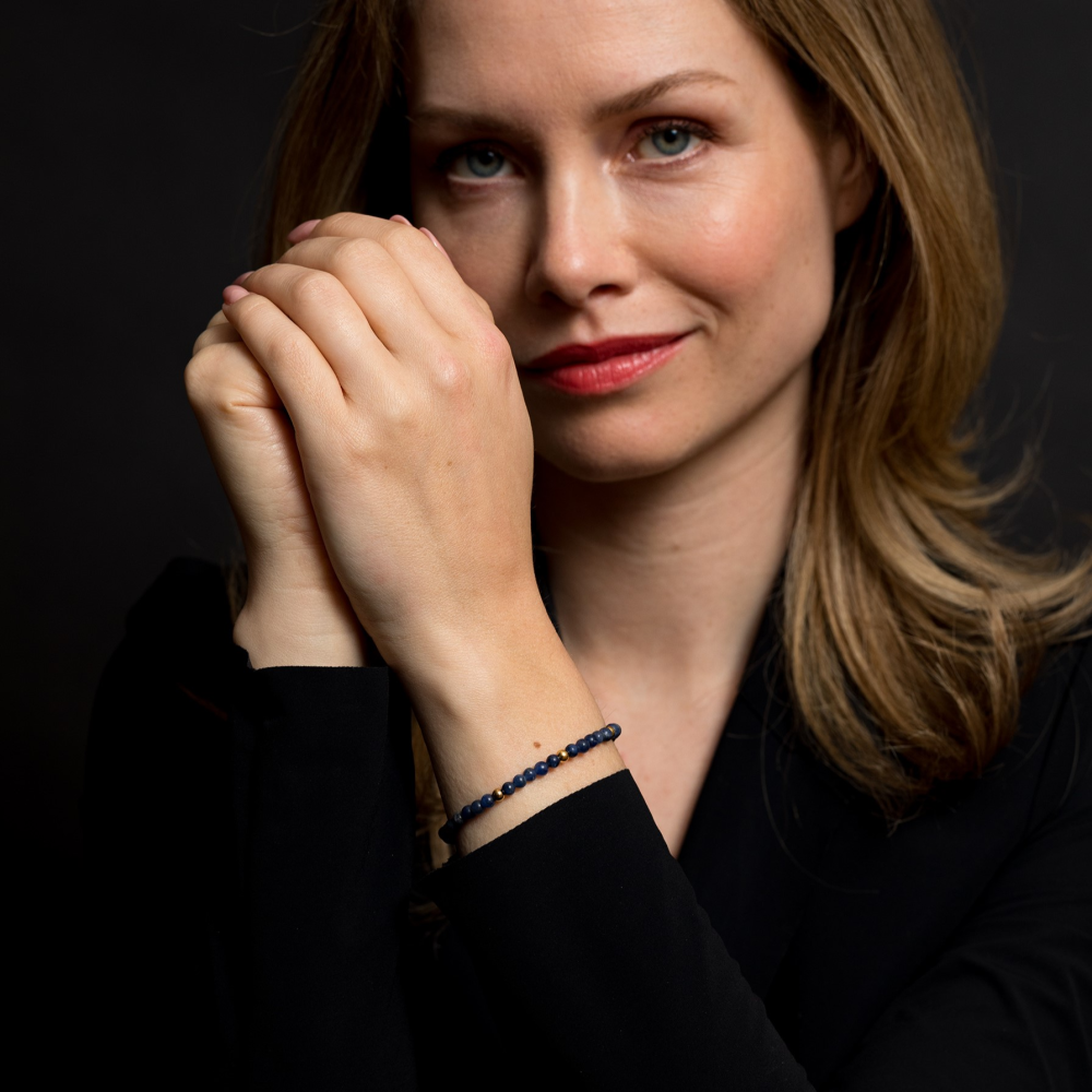 Armband van het merk Rebel & Rose. De armband heeft een hoogwaardige elastische stretch koord, met 4mm kralen van Sodaliet, 18 ct gold plated.