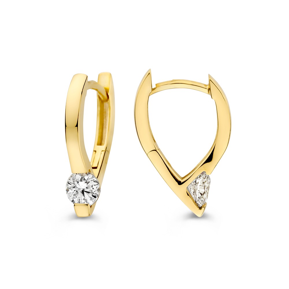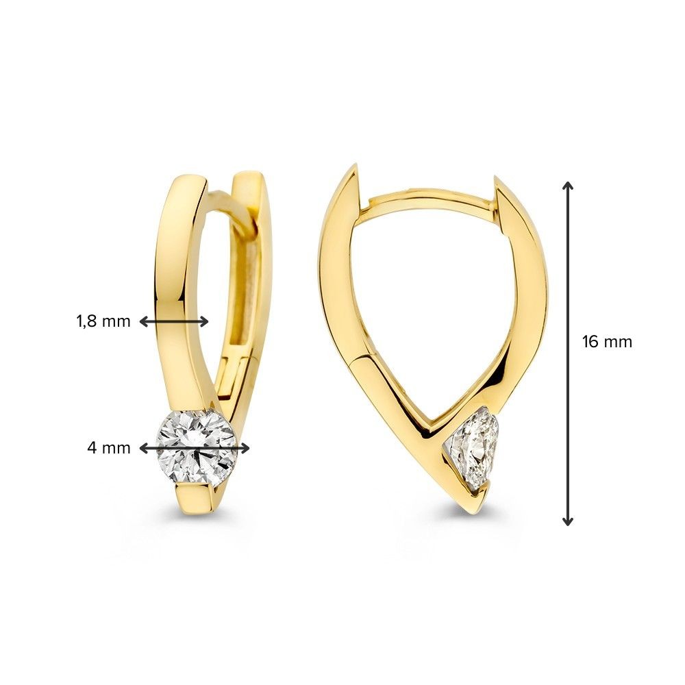 Stijlvolle, geelgouden oorringen in navette vorm. De oorbellen zijn voorzien van fonkelende zirkonia's.