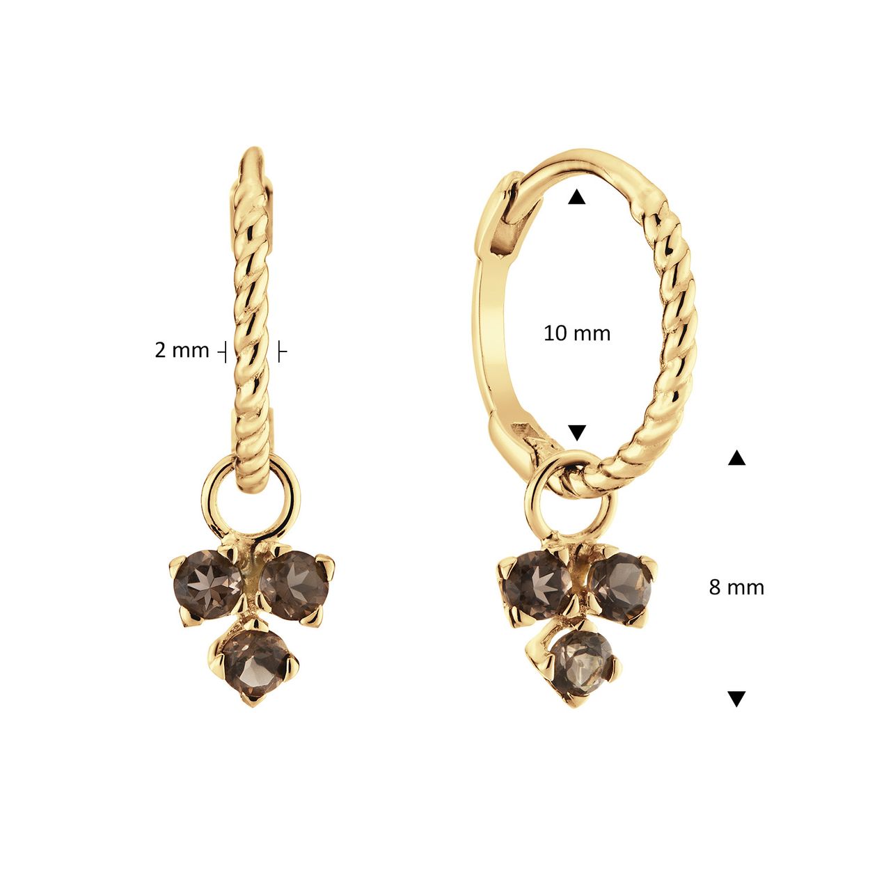 De Triangle Smoky Quartz oorringen zijn gemaakt van 14 karaat goud en bevatten een sprankelende rookkwarts edelsteen. Deze steen helpt ontspannen, loslaten en accepteren. Een mooie toevoeging aan jouw earparty!