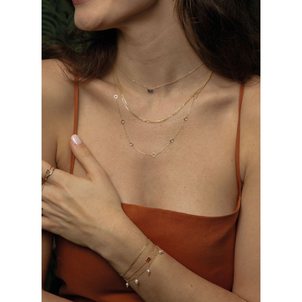 De 14 karaat gouden Waterfall ketting van Jackie is een echte eye-catcher! De ketting bestaat uit vijf kettingen en geeft extra volume aan je layer. Combineer met de bijpassende Waterfall bracelet en ga voor de ultieme Jackie look. Tropical Paradise Dat Jackie van reizen houdt is geen geheim. Voor haar 14 karaat gouden sieradencollectie heeft zij zich deze keer laten inspireren door de tropen. Haar Tropical Paradise collectie biedt een mix van elegantie en avontuur. Voel de zon schijnen waar je ook bent! Weelderige jungles, azuurblauwe oceanen en de schittering van de zon op witte zandstranden: de ontwerpen met edelstenen zijn een weerspiegeling van Jackie’s mooiste herinneringen. Of het een dag op kantoor is of een avondje uit, deze sieraden voegen een vleugje exotische allure toe aan elke gelegenheid. Het merk Jackie is hét 14 karaat gouden on trend sieradenmerk. De collecties zijn geïnspireerd op de reizen die ik maak, van stedentrips tot exotische oorden. Elk gouden sieraad is helemaal van nu, handgemaakt door Europese goudsmeden en vervaardigd van overwegend gerecycled goud met echte edelstenen en zoetwaterparels. Elke collectie is dan ook met veel liefde en passie samengesteld. Mijn Jackie sieraden zijn de perfecte finishing touch voor iedere outfit! Specificaties - Ketting - Materiaal: 14 Karaat - Geelgoud - 585 - Waterfall - Lengte 45cm